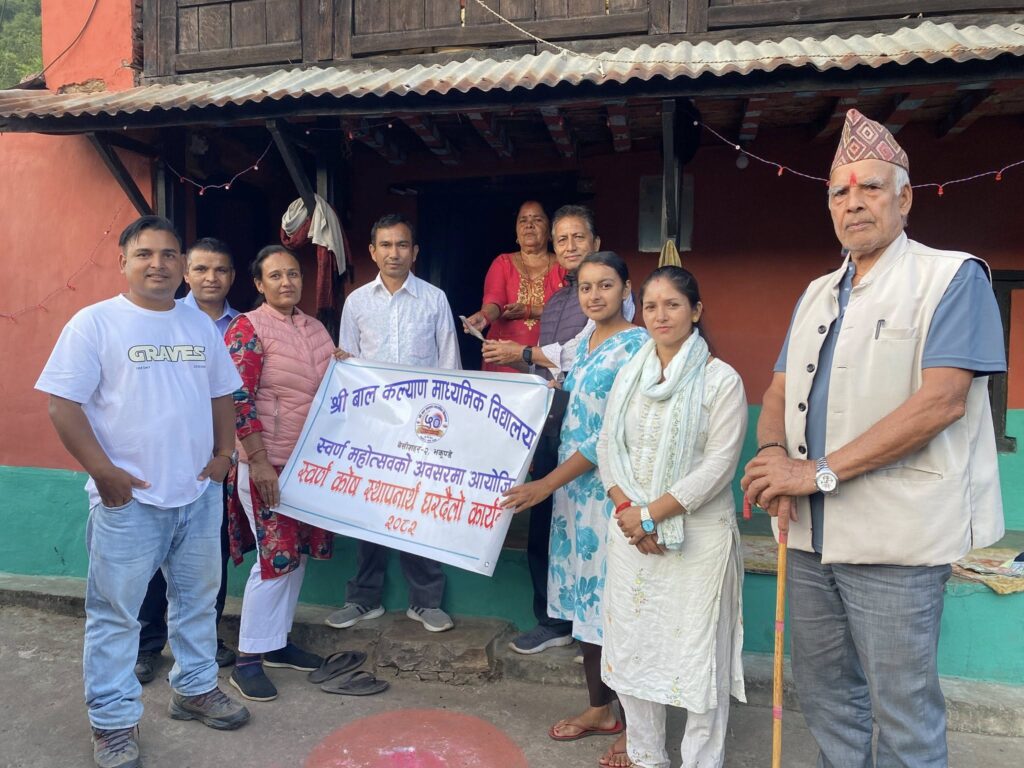 तीन समुह बनाएर शुरु गरिएको घरदैलो अभियान र अभियान अगावै स्वर्ण कोषका लागि सहयोग आउनेक्रमम जारी रहेको स्वर्ण महोत्सव मूल समारोह समतिकिा संयोजक एवं विद्यालय व्यवस्थापन समितिका अध्यक्ष मदन रानाले बताउनुभयो । चरणवद्ध अभियान कात्तिक महिनाभर जारी रहने पनि अध्यक्ष रानाको भनाइ छ ।
