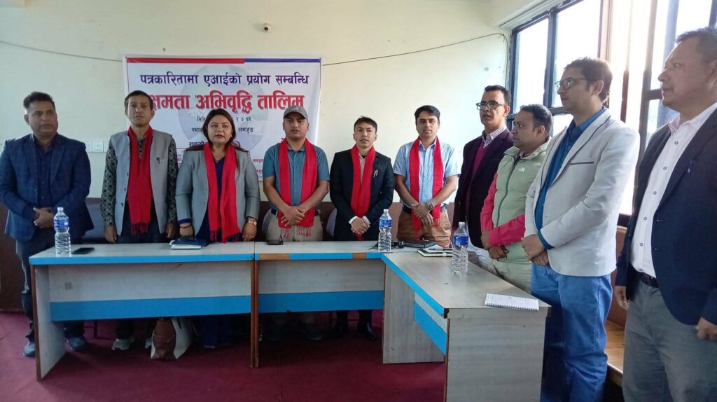 लमजुङको बेसीशहरमा पत्रकारितामा कृत्रिम बुद्धिमत्ता (एआई) को प्रयोगसम्बन्धी दुई दिने क्षमता अभिवृद्धि तालिमको आयोजना गरिएको छ । नेपाल पत्रकार महासंघ जिल्ला शाखा लमजुङको आयोजनामा कार्यक्रमको गण्डकी प्रदेश सरकार प्रेस रजिस्ट्रार बिमला भण्डारीले शुक्रबार उद्घाटन गर्नुभयको थियो ।